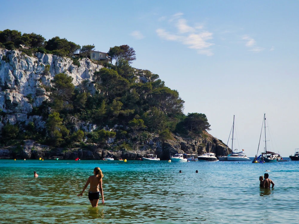 After enjoying the charm of Ciutadella, we set our sails towards the enchanting Cala Galdana. Nestled in a secluded cove surrounded by rugged cliffs and lush greenery, this beach is often called the queen of Menorca's calas. Its horseshoe shape and soft white sands make it a paradise for beach lovers. Spend your day swimming in the turquoise waters, relax under the shade of pine trees, or try some local snacks at a nearby beach bar. It's the perfect spot to fully embrace the laid-back island lifestyle.
