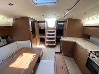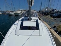 El elegante pero resistente velero Oceanis 46.1 con el paquete de rendimiento "First Line" es un nuevo éxito de ventas del astillero francés Beneteau. Este yate está equipado con mástil cajero, mayor clásica con sables y vela de proa de alto rendimiento. La plataforma de baño retráctil agregará estilo de lujo a su alquiler de yates en las Islas Baleares. ¿Quieres navegarlo en Ibiza? Sólo escríbanos. El accesorio plegable es una buena ventaja.