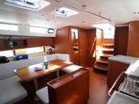 Moderno y elegante velero Oceanis 46.1 de nuestra flota del astillero francés Beneteau. Este velero está equipado con vela mayor enrollable y foque autovirante. La distribución de cinco camarotes con salón convertible permitirá alojar a una tripulación de 12 personas a bordo de este maravilloso yate. La plataforma de baño retráctil agregará estilo de lujo a su yacht charter en Ibiza o Tenerife. La potente configuración solar le permite ser totalmente independiente en fondeos largos.