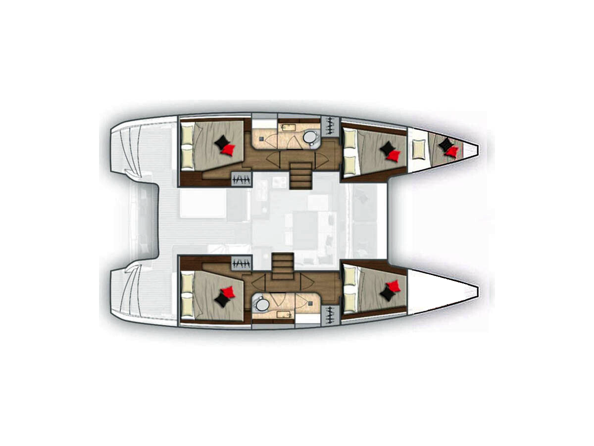 Lagoon 40 is the latest edition of the super-popular Lagoon 380 catamaran and the subsequent replacement Lagoon 39. Our four-cabin catamaran commissioned in May 2020 in Ibiza. A convertible saloon and additional port bow cabin allow you to take on board up to 10 crew members and a skipper. Large inside and elegant on the outside, this catamaran can easily find a berth in any marina, because it is only 40 feet long.Availability Calendar