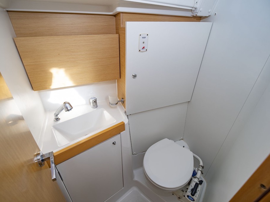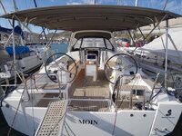 The Beneteau Oceanis 38 is tailored for versatility, with a design that caters to both the enthusiastic sailor and the leisure-seeking family. She features a large cockpit and a spacious interior, providing ample room for guests. The yacht also includes large windows and skylights that enhance the interior with natural light, contributing to a more open and airy atmosphere. Its performance is marked by stability and speed, thanks to the chined hull and dual rudders, which ensure easy handling and a responsive sailing experience. She's also equipped with a convenient rear platform that lowers to sea level, facilitating easy access for swimming and relaxation activities. This makes her an excellent choice for those looking to enjoy extended cruises or weeken sailing adventures.
