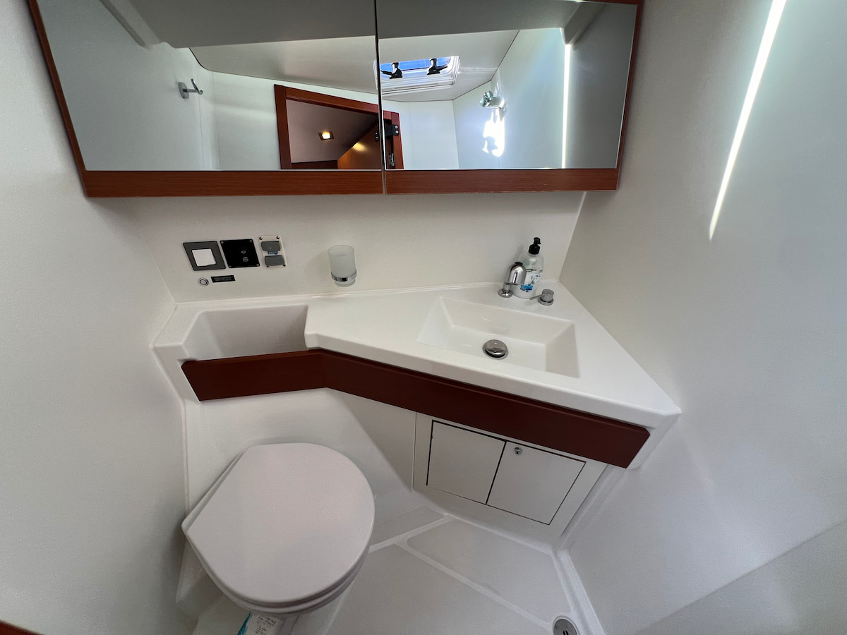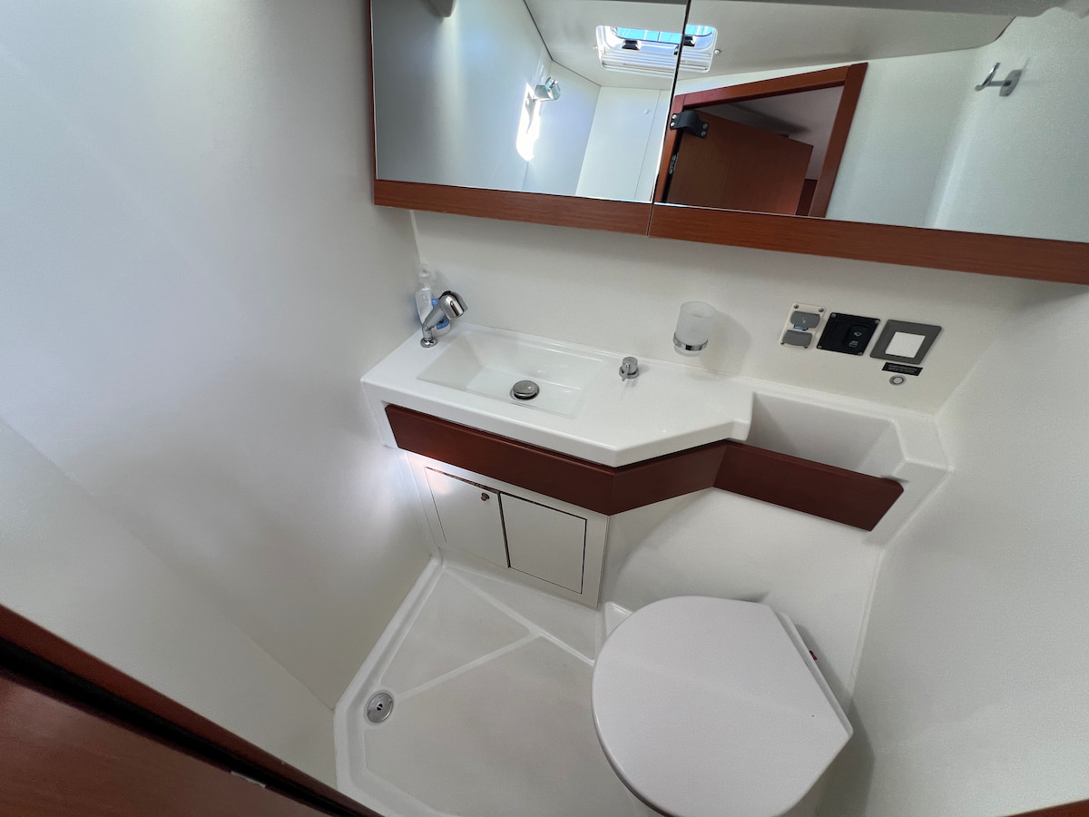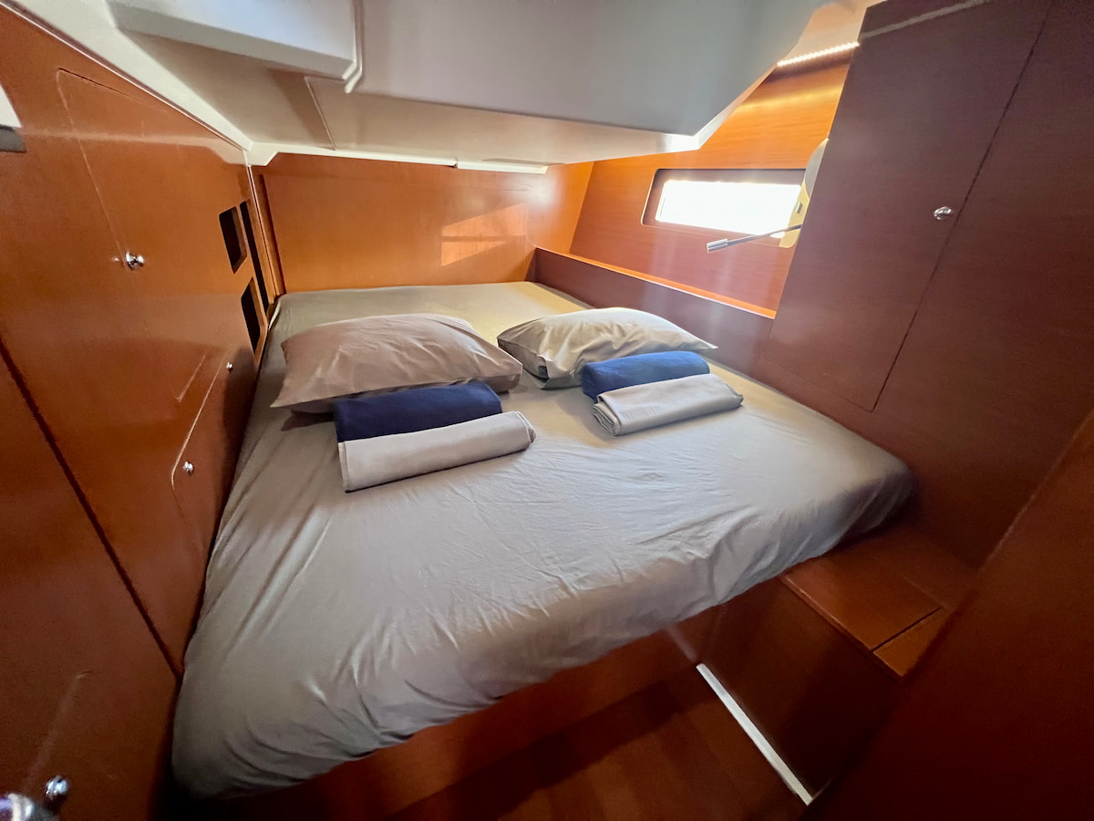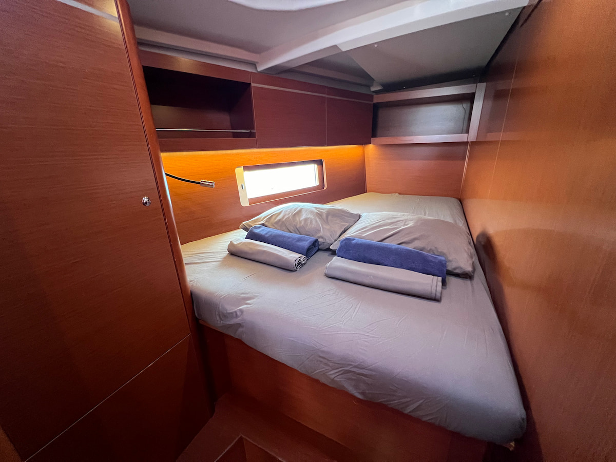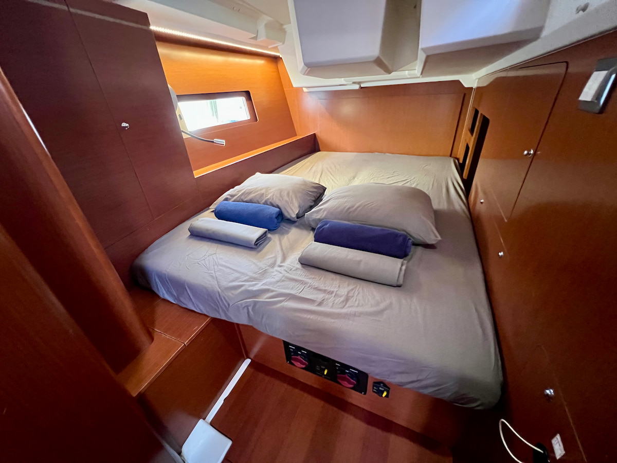 Modern and elegant sailing yacht Oceanis 46.1 in our fleet from French boatyard Beneteau. This yacht is equipped with furling mainsail and selftacking jib. Five cabin layout with convertible saloon will allow to accomodate crew of 12 onboard this wonderful yacht. Retractable swimming platform will add luxury style to your yacht charter in Ibiza or Tenerife. Powerful solar setup allows you to be fully independent on long anchoranges.Availability Calendar